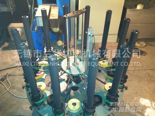 蘭華分絲機是光機電一體產(chǎn)品,是新一代化纖單絲生產(chǎn)的分絲設備。本機采用了分絲羅拉有效地消減了卷繞張力,繞絲的筒管可采用低廉的紙管也可用金屬筒。結(jié)構(gòu)上采用了圓形排部,12個繞絲筒管豎在圓形機座上,分絲點在圓點上方,使得分出的絲角度和張力都一致。在張力控制方面,采用的是秤桿式調(diào)節(jié)分絲張力,在羅拉和收卷方面采用PLC與伺服電機組合控制。本機顯著提高了產(chǎn)品的品質(zhì)與使用性。生產(chǎn)出產(chǎn)品單絲在紡造時不易斷頭,無筒腳絲,布面平整,絲餅利用率100%。