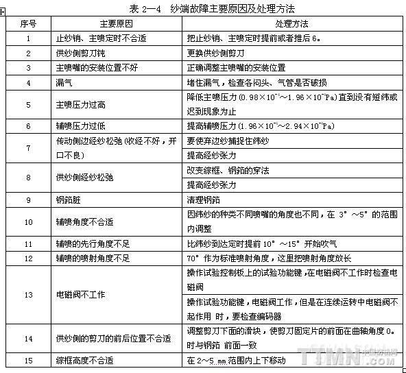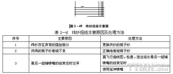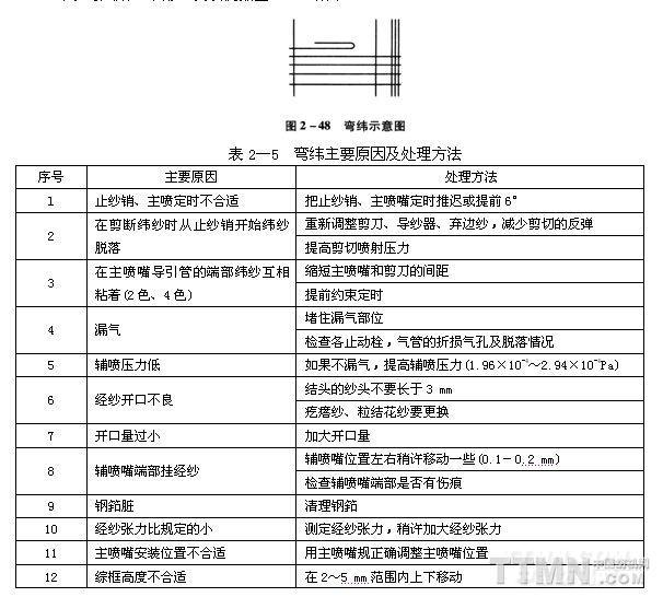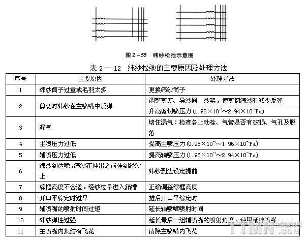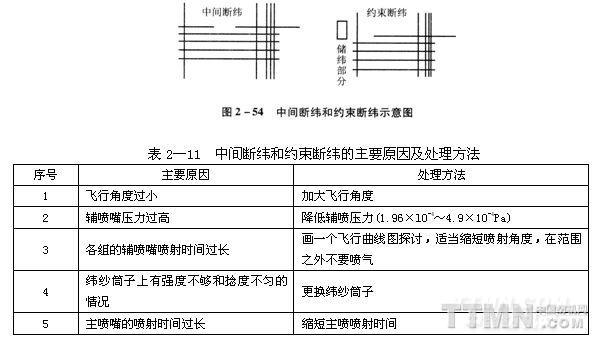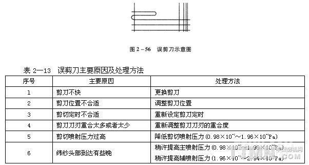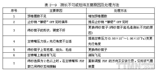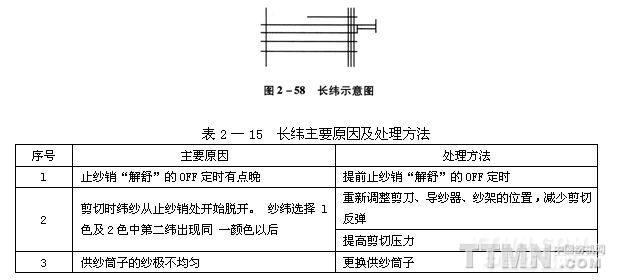 表2—7  織紗側(cè)邊經(jīng)紗掛緯紗主要原因及處理方法