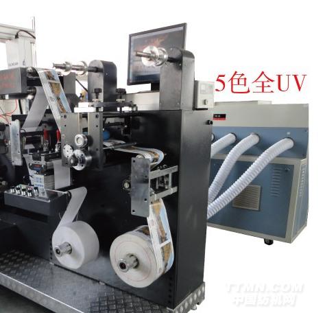 本機特點:5色全UV油墨印刷+覆膜+圓模切+排廢。印刷速度是間歇式機型的2倍。本機采用衛(wèi)星式中心輥水循環(huán)恒溫系統(tǒng)、不停機精確對版裝置、封閉式網(wǎng)紋輥自供墨機構,采用德國EL公司糾偏導正系統(tǒng)。