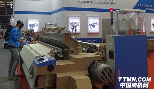 如青島華信此次展出的噴氣織機(jī),從一噴到六噴以及八噴,都是非常優(yōu)秀的。而且可進(jìn)行變化緯密織造。公司展出的噴水織機(jī)則全部采用電腦控制,自動(dòng)化程度極高。在機(jī)器的左邊有一個(gè)屏幕,會展示機(jī)器生產(chǎn)時(shí)的所有信息,并且所有操控鍵都在屏幕附近,操作十分簡便。