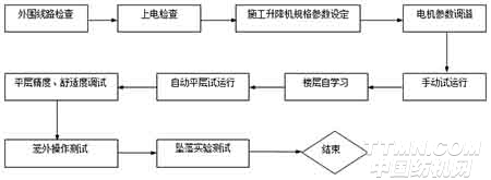 在確保主電路及控制電路接線正確的情況下,系統(tǒng)開始上電調(diào)試。調(diào)試流程如下: