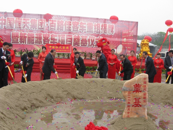4月16日上午10:18, 恒天重工百路佳客車正式隆重啟動“中國恒天集團-百路佳公司重組掛牌暨新能源客車項目”奠基儀式。