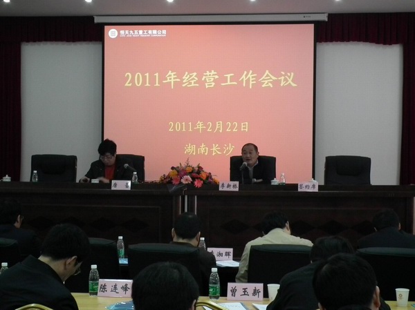 一年之計在于春,在中國恒天集團增資擴股、原長天九五整體更名為“恒天九五重工有限公司”并成功掛牌后,第一個春節(jié)顯得意義非凡。2月22日,恒天九五重工有限公司迎來了初春的第一場大會——2011年經(jīng)營工作會議。這也是公司重組后第一次召開經(jīng)營工作會議,董事長唐蕾、總經(jīng)理李新橋,各分子公司、事業(yè)部中高層領(lǐng)導(dǎo)共60余人參加了此次會議。本次會議是在繼1月24日恒天重工股份有限公司召開的集團經(jīng)營工作會議,對恒天九五重工下達(dá)了2011年目標(biāo)任務(wù)書后,恒天九五重工為認(rèn)真貫徹恒天重工年度工作會議精神,深入分析經(jīng)濟發(fā)展的態(tài)勢,研究部署2011年各項工作,并將任務(wù)向事業(yè)部、子公司進行分解,特召開了本次經(jīng)營工作會議。