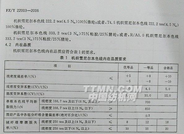 1 FZT 22003-2006機織本色線行業(yè)標準中的內在質量要求