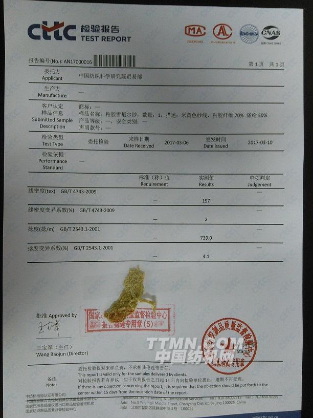 2 試紡5 Nm粘膠雪尼爾紗測試報告