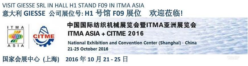 GIESSE SRL will be at ITMA ASIA + CITME 2016 (from the 21th - 25th October in National Exhibition and Convention Center , Shanghai) in HALL H1 at the stand F09.
