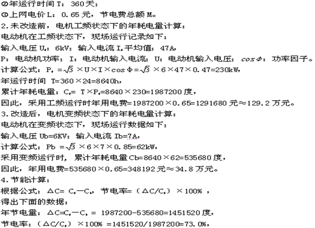 2.壓縮機(jī)出入口壓力差降低了很多。以前壓差5公斤,設(shè)備嘯叫嚴(yán)重,能達(dá)到120分貝;改變頻后壓差為0.8公斤,噪音僅為75分貝左右。從而減輕了起動機(jī)械轉(zhuǎn)矩對電機(jī)機(jī)械損傷,降低了噪音,有效的延長了電機(jī)的使用壽命,相應(yīng)地延長了許多零部件的壽命;同時(shí)極大的減輕了對管道的沖擊,有效延長了管道的檢修周期,減少了檢修維護(hù)開支,節(jié)約大量維護(hù)費(fèi)用。