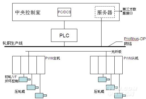 國(guó)內(nèi)某鋼廠集采選礦、鋼鐵冶煉、鋼材軋制為一體,其中軋鋼生產(chǎn)線集成了當(dāng)今世界先進(jìn)的生產(chǎn)工藝和技術(shù),采用了先進(jìn)的生產(chǎn)管理手段,其工藝裝備和產(chǎn)品檔次均達(dá)到國(guó)際一流水平。隨著計(jì)算機(jī)信息技術(shù)的快速發(fā)展,生產(chǎn)過(guò)程對(duì)生產(chǎn)效率和生產(chǎn)工藝的要求進(jìn)一步提高,此鋼廠進(jìn)一步加大技術(shù)改造力度,其扁鋼軋線項(xiàng)目使用英威騰IPE200系列四象限矢量變頻器和S7-300組成整流回饋多傳動(dòng)控制系統(tǒng),在系統(tǒng)設(shè)計(jì)可靠性和工藝要求上達(dá)到國(guó)內(nèi)先進(jìn)水平。本文將對(duì)其進(jìn)行簡(jiǎn)單介紹,對(duì)英威騰IPE200整流回饋多傳動(dòng)系統(tǒng)著重說(shuō)明。