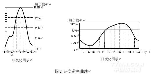 在中央空調(diào)系統(tǒng)設(shè)計時,冷凍泵、冷卻泵的電機(jī)容量是根據(jù)建筑物的最大設(shè)計熱負(fù)荷選定的,都留有一定設(shè)計余量。由于四季氣候及晝夜溫差變化,中央空調(diào)工作時的熱負(fù)荷總是不斷變化。下圖2為一民用建筑物的平均熱負(fù)荷情況: