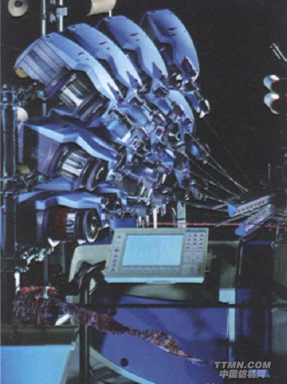 OMNIplus800 4—J250噴氣織機(jī):4色緯紗,配備提花機(jī),筘幅250cm,現(xiàn)場(chǎng)試織一種床墊罩。緯紗:300D丙綸紗,緯密:17根/cm;經(jīng)紗:167dtex滌綸紗,經(jīng)密:33根/cz穿經(jīng)寬度234cm。主要技術(shù)特點(diǎn)包括:采用Grosse提花機(jī)、儲(chǔ)緯器自動(dòng)切換系統(tǒng)PSO、鍵盤(pán)顯示。
