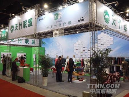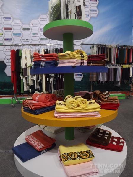 張經理:我們貝利爽主要是以天竹聯盟的副理事單位,這次機械展主要是展示天竹的產品。比如紗線啦、纖維啊,還有面料。主要是展示我們一個終端的產品。