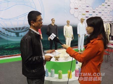 (圖為貝利爽公司的張經理在接受中國紡機網記者采訪   中國紡機網TTMN.COM攝)