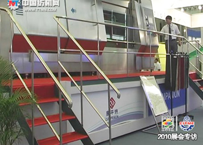 公司特別重視這屆展會(huì),精心為展會(huì)帶來了兩件實(shí)物設(shè)備,一個(gè)是微波烘干機(jī),另外一個(gè)是多功能縮絨柔軟整理機(jī)。除此以外,公司還帶來了一條全自動(dòng)筒子紗染色生產(chǎn)線的錄像,這款產(chǎn)品有許多好處。它可以節(jié)約大量人力,只需要3個(gè)人在中控室屏幕旁觀看,指揮下面的生產(chǎn)。這款產(chǎn)品屬于國內(nèi)首創(chuàng),非常新穎,既可以少用人工,又可以保證生產(chǎn)質(zhì)量。