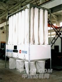 車間含塵空氣通過風機送入靜壓箱內(nèi),由于風速急劇下降,大部分纖維塵雜自然落入集塵袋內(nèi),小部分粉塵隨空氣吸附在過濾袋上,通過振蕩機構定時振蕩,也落入集塵袋內(nèi)。