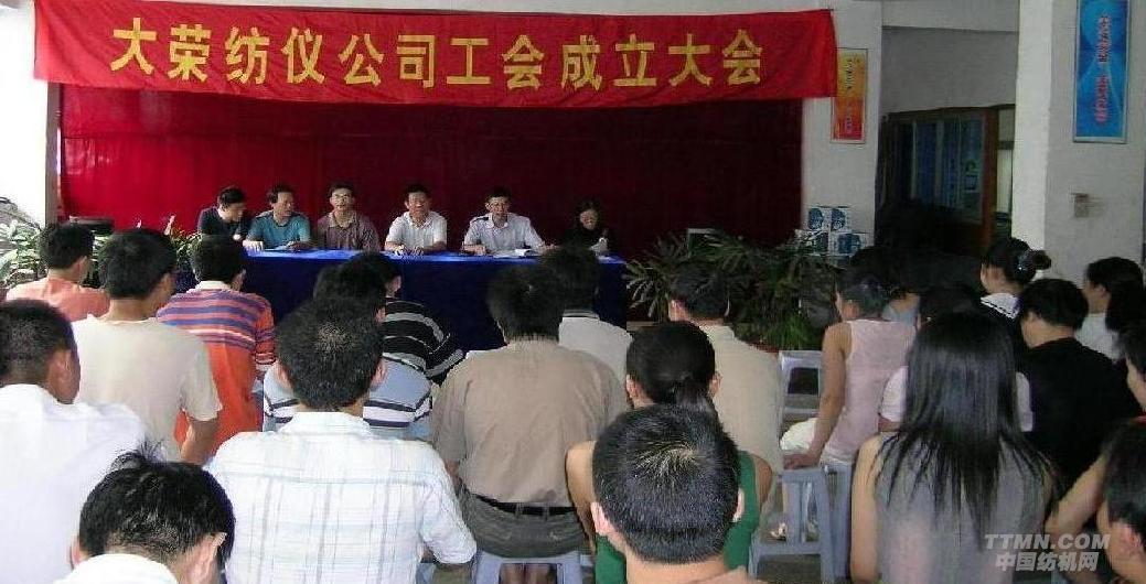 經(jīng)過幾個(gè)月的充分醞釀和準(zhǔn)備,大榮紡儀公司工會(huì)委員會(huì)于九月二十七日下午召開的成立大會(huì)上,在隆重?zé)崃业臍夥罩行娉闪ⅰ9?huì)是職工自愿結(jié)合的工人階級(jí)群眾組織是黨聯(lián)系職工群眾的橋梁和紐帶,是國家政權(quán)的重要支柱,大榮紡儀公司工會(huì)的成立是大榮職工政治生活中的一件大喜事,標(biāo)志著大榮公司各項(xiàng)組織的進(jìn)一步健全。成立大會(huì)上,主持人張孟勝副總經(jīng)理闡述了工會(huì)的宗旨和會(huì)員的義務(wù)和權(quán)利。大會(huì)通過無記名投票方式,直接采用候選人數(shù)多于應(yīng)選人數(shù)的差額選舉辦法選舉產(chǎn)生了第一屆工會(huì)委員會(huì)委員。大榮公司董事長吳昭彪在大會(huì)上發(fā)表了熱情洋溢的講話,表示全力支持工會(huì)組織的工作并作了鄭重的承諾。還向每個(gè)會(huì)員贈(zèng)送了紀(jì)念品。大榮紡儀公司的職工大都來自祖國各地,其中雙職工占了很大的比例,工會(huì)的成立更使他們感到大家庭的溫暖,從到會(huì)的每一位職工臉上綻放的笑容就充分表達(dá)他們的美好愿望和對(duì)未來的企盼。同時(shí)也讓每個(gè)新當(dāng)選的工會(huì)委員深切感到自己肩負(fù)的使命與責(zé)任。