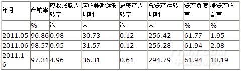 從產(chǎn)銷銜接情況看,2011年1-6月份紡織機(jī)械行業(yè)產(chǎn)銷率為97.31%,表明該行業(yè)產(chǎn)品銷售狀況較好;應(yīng)收賬款周轉(zhuǎn)率(主營收入/應(yīng)收賬款凈額)為4.96次;應(yīng)收賬款運轉(zhuǎn)周期(180天/應(yīng)收賬款周轉(zhuǎn)率)為36.31天,應(yīng)收賬款周轉(zhuǎn)次數(shù)越多,或者應(yīng)收賬款周轉(zhuǎn)天數(shù)越少,表明其實現(xiàn)利潤的通道越加通暢。