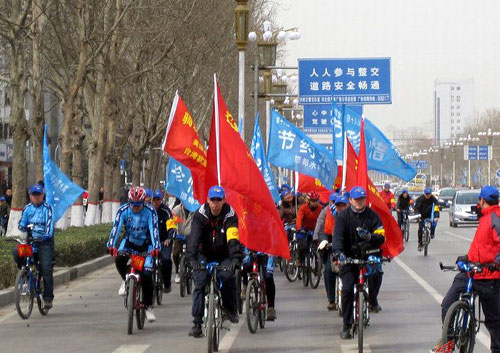 邯鄲紡機(jī)公司的30余名職工,本著增強(qiáng)體質(zhì)、陶冶情操、增長史地人文知識,促進(jìn)精神文明建設(shè),更好地服務(wù)于企業(yè)和社會的宗旨,自發(fā)組織成立戶外自行車“驢”友隊,該隊活動3年以來聊城、安陽、邢臺、涉縣等邯鄲周邊區(qū)域都留下他們的身影。在這近萬公里的騎行中他們不僅了解當(dāng)?shù)厝宋?,并在宣傳企業(yè)的同時積極參加公益和慈善活動。植樹節(jié)期間,他們在邯鄲岳城水庫義務(wù)植樹百余株。在第18屆世界水日、第23屆中國水周期間,邯鄲紡機(jī)“驢”友隊還通過沿街騎行等方式進(jìn)行節(jié)水宣傳,受到市民稱贊。河北電視臺、邯鄲電視臺等媒體進(jìn)行了新聞報道。