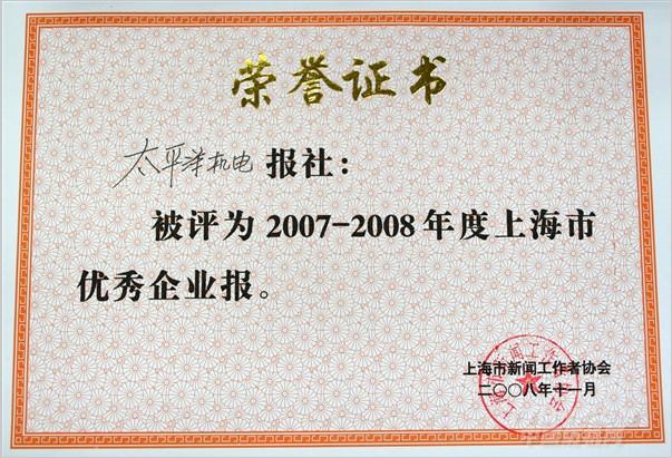 紀(jì)念第九屆中國記者節(jié)暨2008年度優(yōu)秀企業(yè)報(bào)表彰大會舉行 太平洋機(jī)電報(bào)蟬聯(lián)“上海市優(yōu)秀企業(yè)報(bào)”