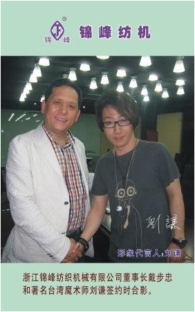 我公司董事長兼總經(jīng)理戴步忠先生,于09年4月22日在上海喜萊登酒店與著名臺灣魔術(shù)師劉謙簽下合約,正式邀請劉謙作為錦峰品牌的形象代言人,“神奇般的梳理效果”——這是錦峰紡機打造民族品牌,提升企業(yè)形象的創(chuàng)新舉措,在行業(yè)內(nèi)也是首屈一指。