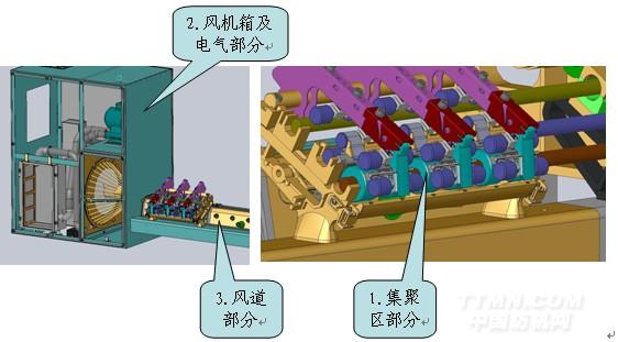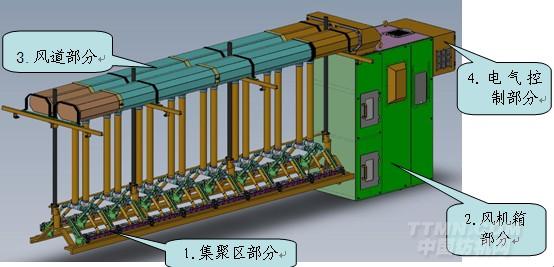 風道的主要作用是為負壓集聚提供氣流的通道,同和公司有適用于長車的大風道和上置式雙風道,適用于短車的小風道和上置式單風道。