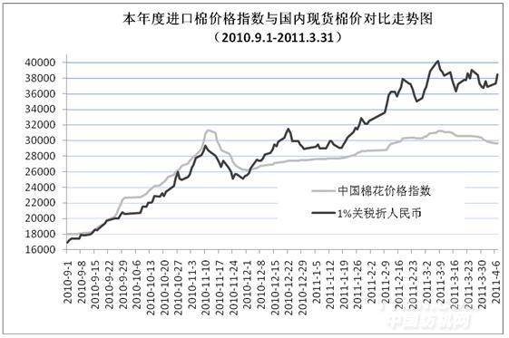 3月國內(nèi)棉花現(xiàn)貨市場先漲后跌。上旬受國際價(jià)格、紡織企業(yè)補(bǔ)庫、棉商惜售等因素影響,持續(xù)小幅上漲;中旬后,日本地震引發(fā)大宗商品市場全面回落,國內(nèi)外期貨行情大幅波動(dòng)回落,對現(xiàn)貨市場形成壓力,加之紡織企業(yè)經(jīng)營狀況不佳,原料采購更趨謹(jǐn)慎,國內(nèi)棉花價(jià)格不斷下滑,月末已低于月初水平,但月均價(jià)環(huán)比仍上漲近千元。其中CCIndex328級月均價(jià)30733元/噸,較2月上漲938元/噸,漲幅3.1%,較去年同期上漲15172元/噸,漲幅98%;CCIndex229級月均價(jià)32630元/噸,環(huán)比上漲1211元,同比上漲16467元。CCIndex527級均價(jià)為27771元/噸,環(huán)比上漲605元,同比上漲13303元。