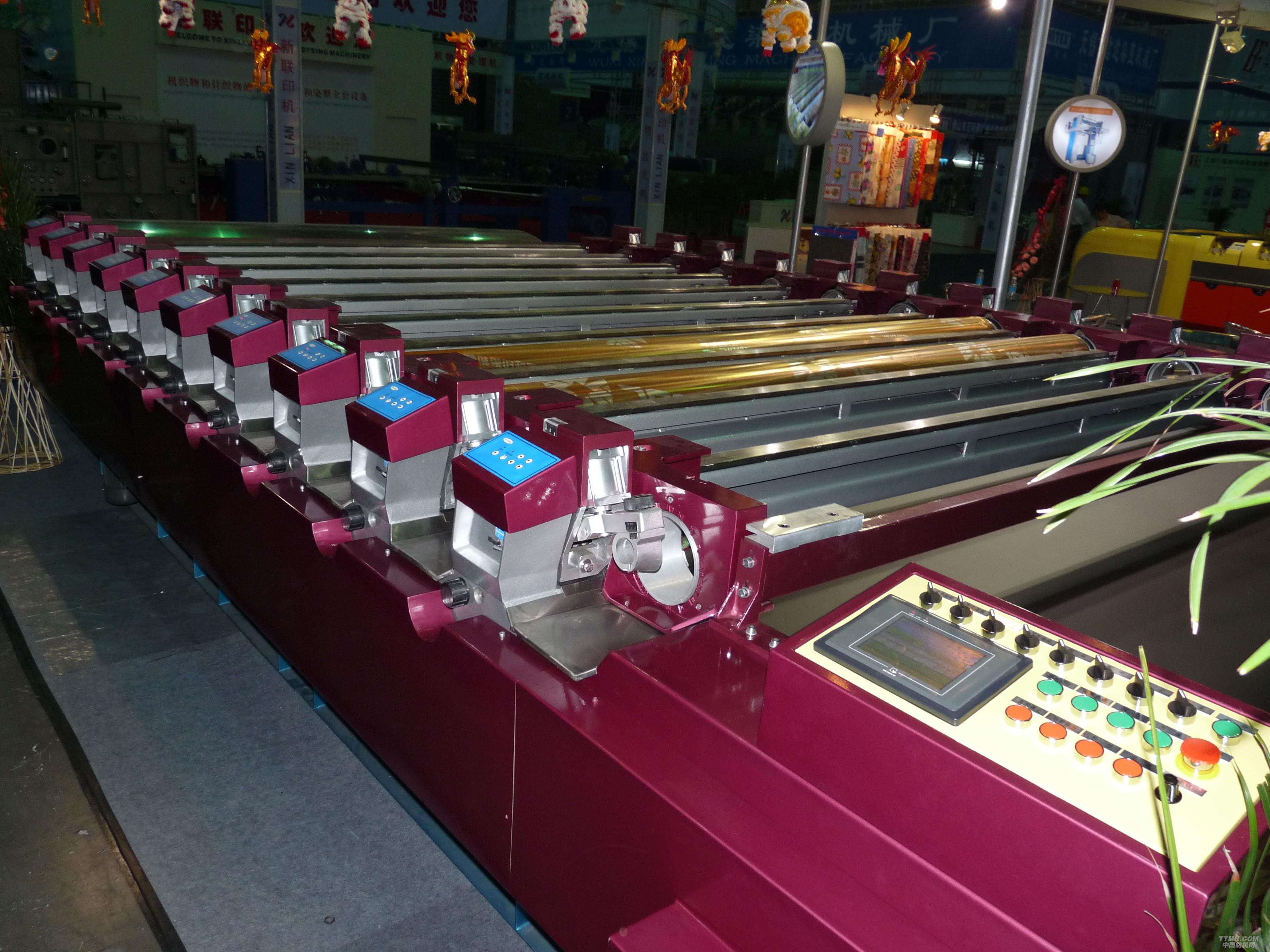 JX-02圓網(wǎng)印花機圓網(wǎng)采用數(shù)字化伺服電機獨立傳動,避免了集體傳動因傳動鏈太多而產(chǎn)生的累計誤差,同時機械傳動長期使用造成機械磨損,易出現(xiàn)“跑花”現(xiàn)象,降低印花精度,產(chǎn)品質(zhì)量難以保證。采用圓網(wǎng)獨立傳動,縱向不跑花,對花精度高,運行穩(wěn)定性好,一等品率高。采用數(shù)字對花系統(tǒng),品種更新,產(chǎn)量高,并節(jié)約了前期對花樣布,省布量6%。圓網(wǎng)、導(dǎo)帶之間的速差可調(diào),以滿足不同品種印花,達到最佳印花效果。具有車速、速差、計時、故障診斷顯示和對花參數(shù)鎖定功能,實現(xiàn)人機界面,以便指導(dǎo)維護與維修。由于采用了圓網(wǎng)數(shù)字獨立傳動,革除了機械傳動鏈,在少數(shù)套色印花時網(wǎng)頭可輪流使用,這將進一步延長設(shè)備使用壽命,降低維修費用。不同周長花圈的圓網(wǎng)可在本機上同時使用。上漿裝置的刮捏采用了滋棒形式,達到了上漿均勻的效果,避免了波泡的出現(xiàn)??朔艘酝?2色印花只能用11色花型的缺點,真E達到了12色印花機印12色花型的功能。