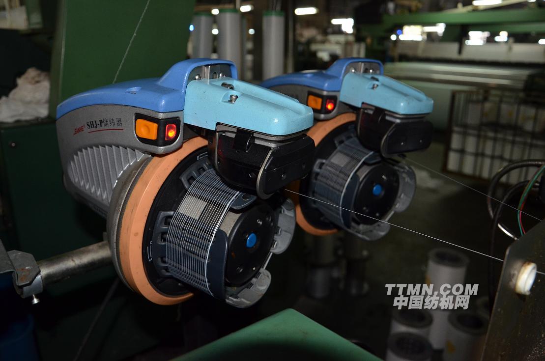 驅(qū)車來到紹興某紡織有限公司,該公司負(fù)責(zé)設(shè)備管理的梁先生盛情接待了我們,在生產(chǎn)車間考察新產(chǎn)品SHJ-P的運行情況, SHJ-P在2012年2月開始投入到該公司使用,一直正常的在運行。該產(chǎn)品外觀時尚,采用永磁電機,反應(yīng)更敏捷,節(jié)能更卓越,能輕松應(yīng)對各種復(fù)雜花樣。釋放緯紗采用光電傳感器計圈,定長更可靠,能巧妙應(yīng)對干擾信息。整體密封設(shè)計、防水、防塵更有效,能沉著應(yīng)對惡劣環(huán)境。改進(jìn)的等離子噴涂層,超強的吸附力,能頑強應(yīng)對紗線和漿料的折磨。磁感應(yīng)操作開關(guān)可靠又好操作,徹底解決了前一代儲緯器薄膜開關(guān)易損的缺憾。