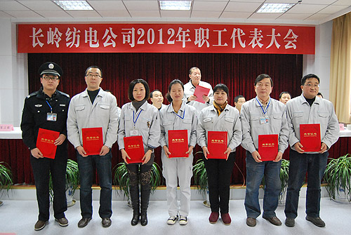 會上,表彰了2011年度先進(jìn)集體、先進(jìn)個人、質(zhì)量工作先進(jìn)集體、先進(jìn)個人,受到表彰的先進(jìn)集體代表設(shè)備部動力室王俊、先進(jìn)工作者代表王華分別做發(fā)言,表示要發(fā)揚(yáng)紡電人頑強(qiáng)拼搏、勇于開拓的優(yōu)良傳統(tǒng),積極進(jìn)取,奮發(fā)有為,為全面完成2012年各項生產(chǎn)經(jīng)營目標(biāo)而努力工作。