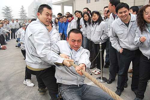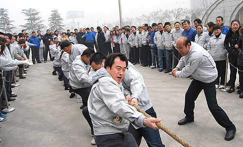 為慶祝農(nóng)歷壬辰年新春佳節(jié)的來(lái)臨,2012年1月18日下午,紡電公司在公司園區(qū)內(nèi)開(kāi)展了“賀新年迎春運(yùn)動(dòng)會(huì)”。紡電公司9個(gè)分會(huì)、14個(gè)部門的200多名員工參加了運(yùn)動(dòng)會(huì)。此次運(yùn)動(dòng)會(huì)設(shè)置了“拔河、集體木屐、跳繩、頂氣球”四個(gè)項(xiàng)目。各分會(huì)和各參賽單位都認(rèn)真對(duì)待,積極組織訓(xùn)練,各行政單位也給予全力支持。運(yùn)動(dòng)會(huì)本著“友誼第一、比賽第二”的原則,賽場(chǎng)上隊(duì)員全力以赴、斗志昂揚(yáng),比賽緊張激烈、精彩紛呈,展現(xiàn)了紡電員工的活力和激情。經(jīng)過(guò)激烈的角逐,紡研所分會(huì)獲得集體木屐、跳繩、頂氣球三項(xiàng)總分第一;質(zhì)管部分會(huì)和紡電制造部分會(huì)并列第二名。拔河比賽前兩名分別是:紡研所分會(huì)和紡電制造部分會(huì)。通過(guò)比賽,既增強(qiáng)了員工的體質(zhì)、愉悅了身心、鍛煉了意志,也促進(jìn)了員工間的了解與交流,增進(jìn)了友誼,比出了風(fēng)格,賽出了水平。