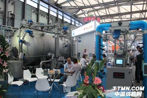 據(jù)悉,公司此次展出最新型的EXCELGF241XL超低浴比高溫高壓紗線染色機,其中筒子紗染色浴比達到1:2.5-3和經(jīng)軸染色浴比達到1:3-4并打出了干紗浴比1:3的口號,成為2014年國家重點節(jié)能節(jié)水染整設備。此外,其展出的Airforceextreme gfaf 高溫霧化染色機,采用空氣動力學原理,將鼓風機產(chǎn)生的混合氣體注入噴嘴,使混合氣體與染機主泵輸送的染液在噴嘴里相遇。染液霧化后噴向織物,帶動織物運行,將染色浴比最低達到1:2.8-3.5。憑借其設備優(yōu)勢,高勛收獲了紹興建中印染服裝有限公司16臺訂單。