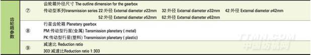 PM 系列行星齒輪減速電動(dòng)機(jī)型號(hào)的閱讀方法: