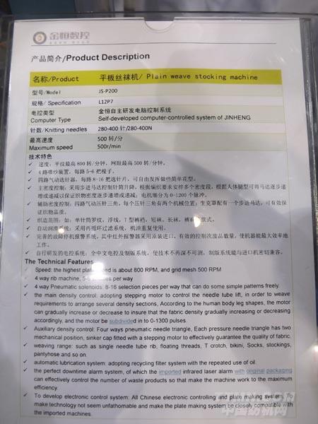 6. 織造范圍:" K% |如:單針筒羅紋,T型褲襠,比基尼,提花比基尼,左右兩邊帶花型,浮線/加固/集圈花型,顏色提花,袋型襪跟,收腹提臀,及曲波襪邊等款式。