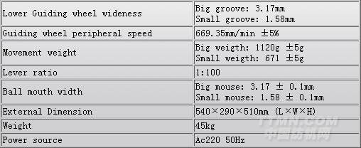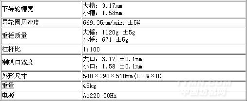 主要技術(shù)參數(shù)