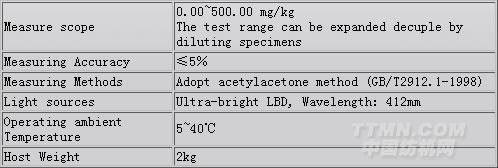 采用國家標準方法(GB/T2912.1-1998)可同時顯示出甲醛測定值和吸光度值。