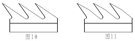 (1)總高h(yuǎn)1、齒深h6:齒深的大小直接關(guān)系到齒間容量的大小及分梳、均勻混合和轉(zhuǎn)移等作用的好壞。采用矮齒、淺齒,使纖維處于齒尖,與另一針面(蓋板、道夫)的接觸長度和作用齒數(shù)增加,錫林與蓋板交替作用增加,利于分梳、轉(zhuǎn)移,對減少棉結(jié)有利,解決了小工作角針布的轉(zhuǎn)移問題,也為增加齒密、增大前角創(chuàng)造了條件。h6小,減少纖維充塞,抗軋性能好,氣流產(chǎn)生弱,從而減少氣流外溢。但h6不能太小,否則貯存纖維量少,影響均勻混合作用。