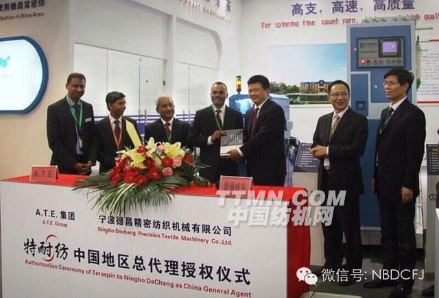 2014年6月16日下午,在上海新國際博覽中心,二年一次的《ITMA亞洲展覽會》現(xiàn)場中,寧波德昌紡機(jī)和印度A.T.E.集團(tuán)在德昌展位上舉行了“特耐紡”中國地區(qū)總代理代理授權(quán)儀式,正式將“特耐紡”高速紡紗專件推薦給廣大中國客戶。