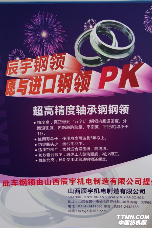 展會(huì)期間,山西辰宇推出的超高精度軸承鋼鋼領(lǐng)是公司自主研發(fā)的高技術(shù)產(chǎn)品。為讓客戶真切的體會(huì)到產(chǎn)品的穩(wěn)定性及高可靠性,山西辰宇還在配套主機(jī)上完全模擬日??蛻舻纳a(chǎn)條件。觀眾在看到完美的產(chǎn)品演示后,贊美之聲不絕于耳。據(jù)悉,該產(chǎn)品精度高,可真正做到“五個(gè)1”(鋼領(lǐng)內(nèi)跑道圓度、外跑道圓度、內(nèi)跑道跳動(dòng)量、平面度、平行度)均小于1絲。紡紗看臺(tái)數(shù)少,能有效減少工人勞動(dòng)強(qiáng)度,減少用工。使用壽命長,至少可達(dá)5年以上,長期使用比普通鋼領(lǐng)還便宜,是一款性價(jià)比極高的產(chǎn)品。這種開放式的交流與演示,讓山西辰宇展臺(tái)氛圍更加融洽,不少客商現(xiàn)場就與山西辰宇達(dá)成合作意向。