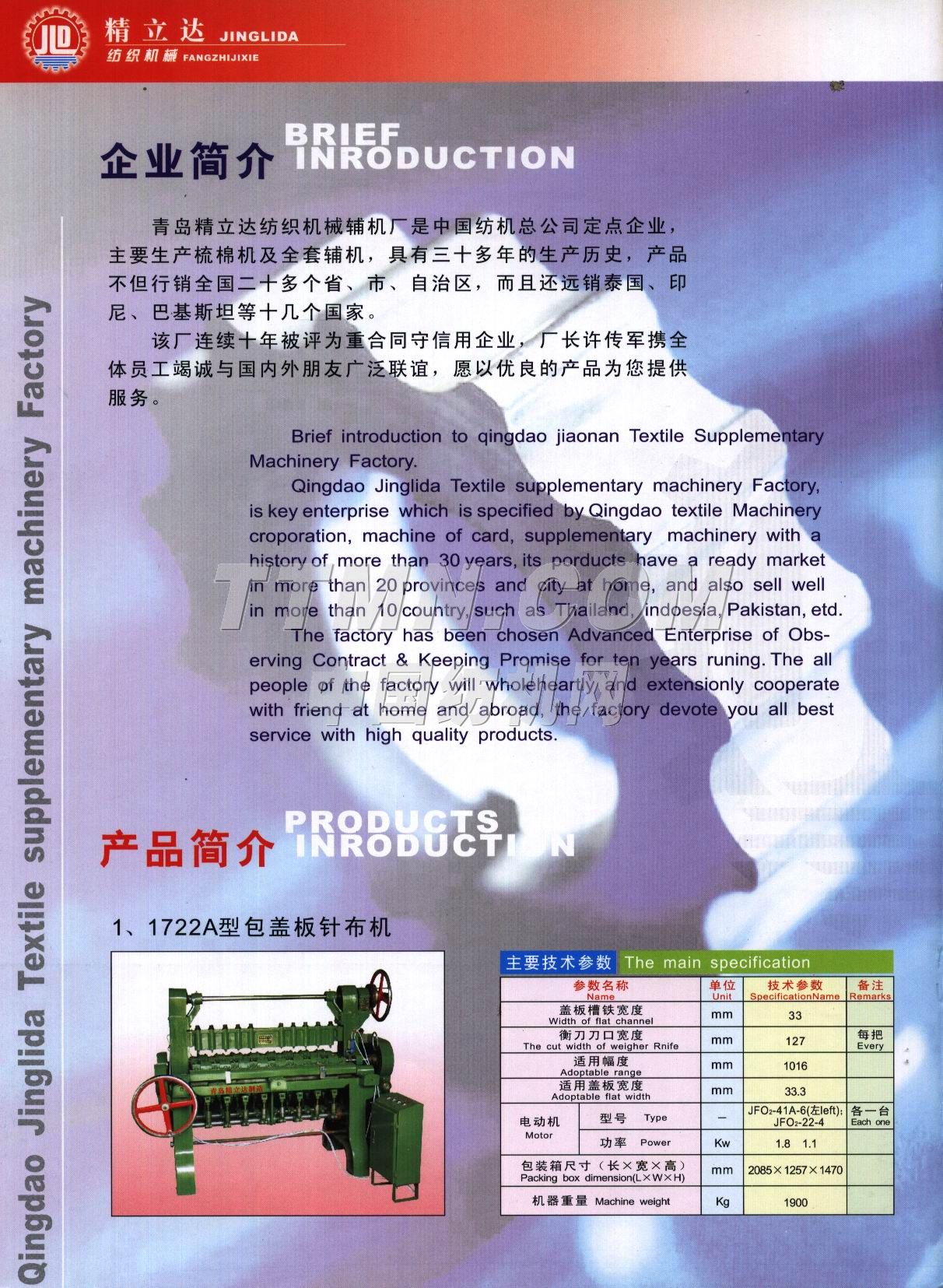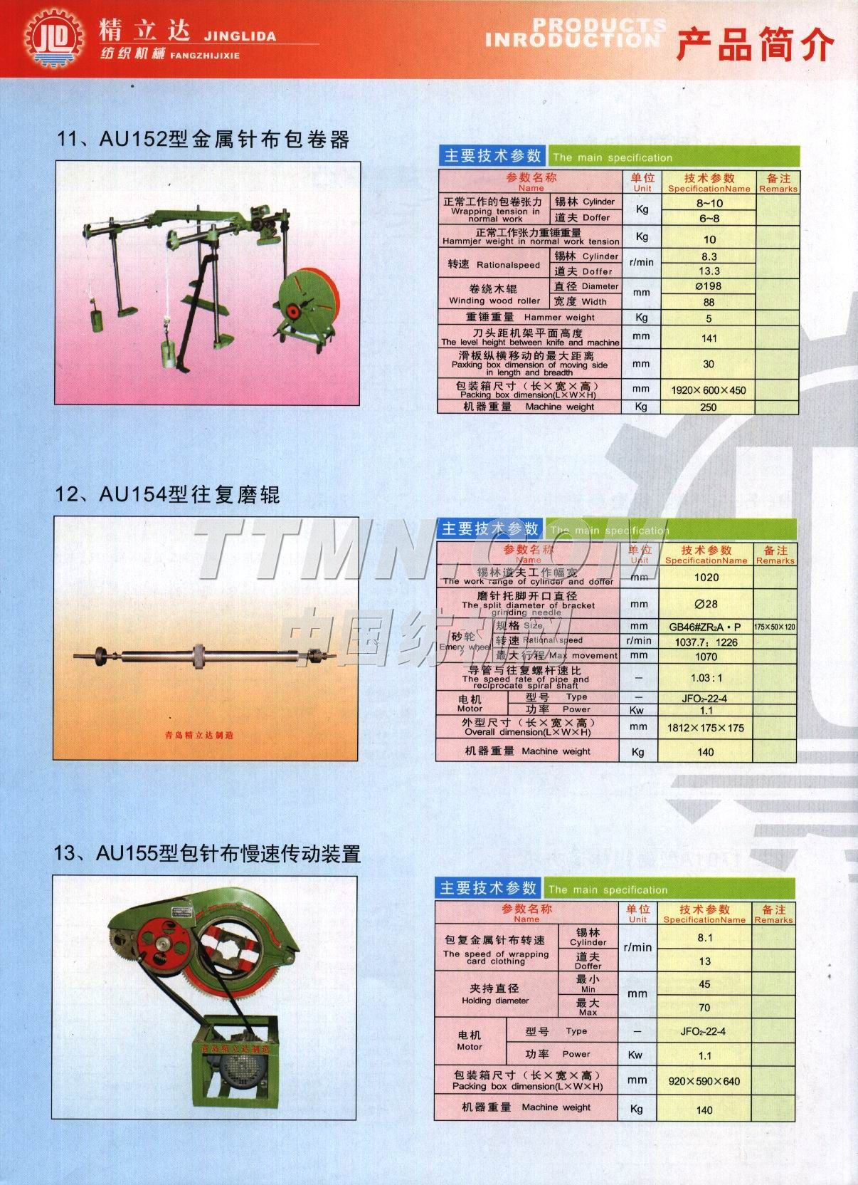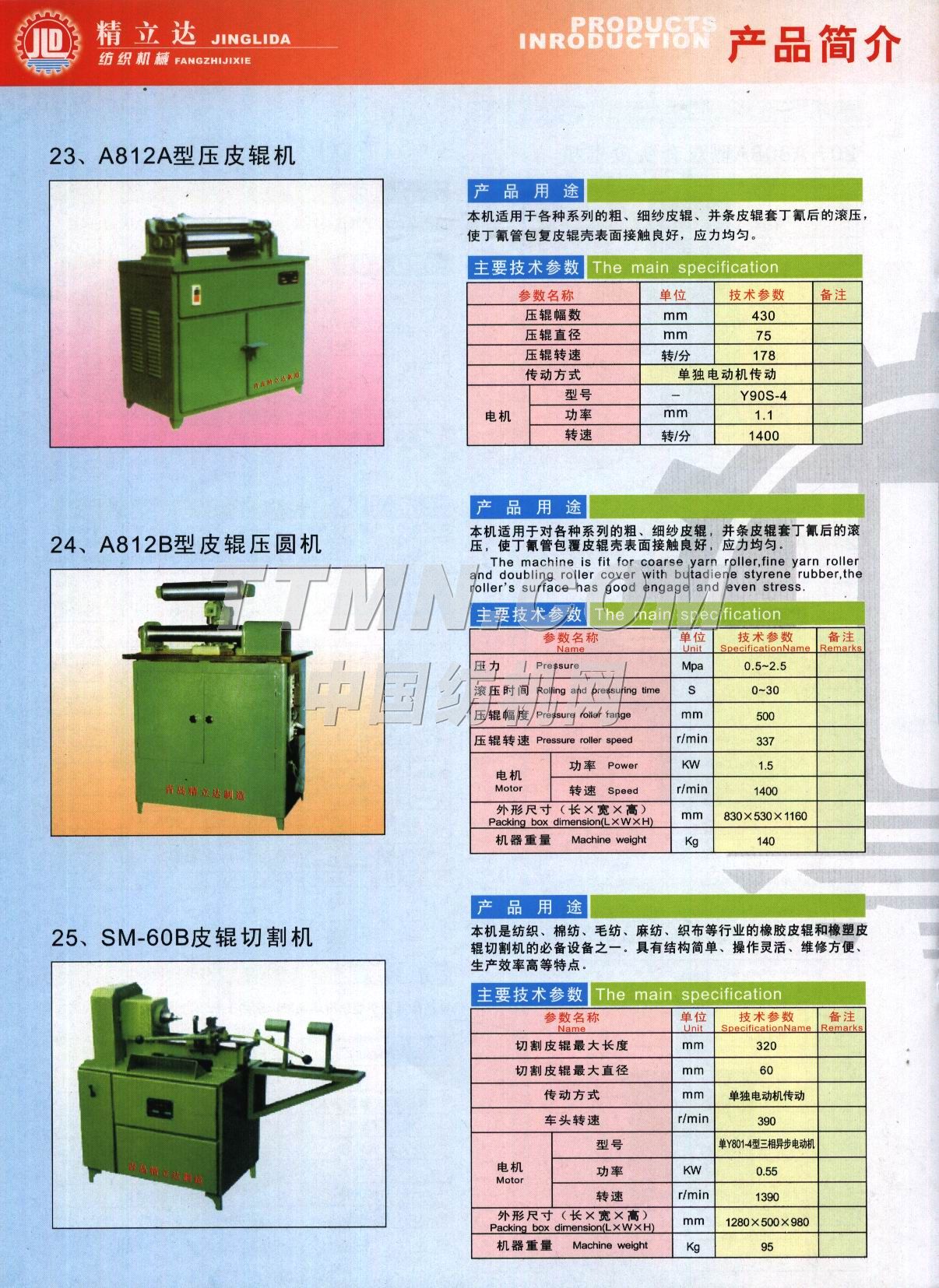 | 紡紗機械 開清棉 梳棉機 精梳機 并條機 粗紗機 細紗機 紡紗機 絡并捻 織造機械 劍桿織機 噴氣織機 整經(jīng)機 漿紗機 提花機 織帶機 化纖機械 化纖成套設備 化纖通用設備 針織機械 圓緯機 橫機 經(jīng)編機 襪機 手套機 鉤編機 非織造機械 成網(wǎng)機械 非織造布單機設備 非織造布生產(chǎn)線 紡織器材 鋼領 錠子 羅拉 搖架 上銷 錫林 鋼筘 針布 橡膠 染整機械 染色機 印花機 蒸箱 軋車 烘燥機 印染后整理 聯(lián)合機 驗布機 紡機自動化 變頻器 傳感器 繼電器 紡織儀器 紡織配件 紡紗配件 無梭織機配件 針織配件 印染配件 |