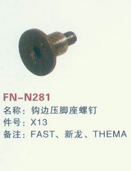 您所在的位置:紡機(jī)網(wǎng) > 產(chǎn)品庫 > FN-N281 鉤邊壓腳座螺釘