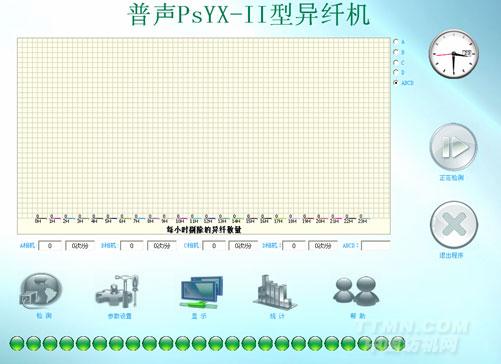 一、功能介紹:因收購棉花過程中的種種原因,使部分異纖維混入棉包;如丙綸絲、有色和白色尼龍、毛發(fā)、布片等幾十種,俗稱“三絲”。嚴(yán)重影響了棉紡廠的產(chǎn)品質(zhì)量。為了降低人工撿“三絲”的成本,我們開發(fā)了PsYX-II型 普聲異纖機(jī)。本設(shè)備采用多臺(tái)高分辨率、多光譜、高速線陣掃描相機(jī),采用特制的白色和紫外光源,合理設(shè)置的棉流檢測(cè)通道,集機(jī)、電、氣于一體的剔除噴吹結(jié)構(gòu),閾值自適應(yīng)優(yōu)化算法,高速高性能控制計(jì)算機(jī),友善的觸摸屏人機(jī)界面等技術(shù),使設(shè)備可以輕松識(shí)別和撿出頭發(fā)絲,丙綸絲,麻絲,塑料片等各種異纖,并保證設(shè)備長(zhǎng)期穩(wěn)定、可靠、高效的工作;其基本工作原理為由多臺(tái)高速、高分辨率線陣相機(jī)分別對(duì)透明的檢測(cè)通道進(jìn)行多次掃,相機(jī)獲取的圖像數(shù)據(jù)經(jīng)高速數(shù)據(jù)采集卡到高性能計(jì)算機(jī),高性能計(jì)算機(jī)按照一定的算法,檢測(cè)每次掃描的數(shù)據(jù),發(fā)現(xiàn)異纖維后,經(jīng)過I/O控制卡控制電磁閥將其用壓縮空氣剔除到排雜通道