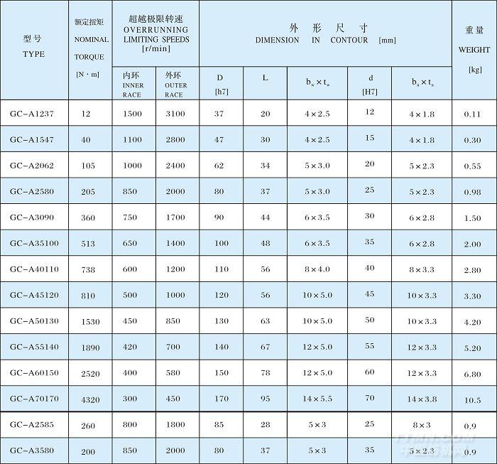 單項(xiàng)離合器系列GC-A