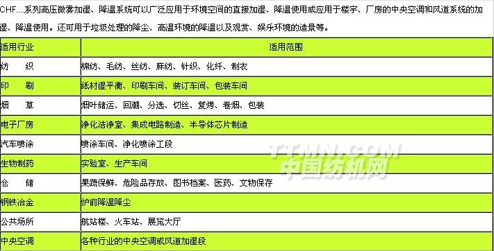 CHF....系列高壓微霧加濕、降溫系統(tǒng)包括主機(jī)、輸水管路和高壓霧化噴嘴等,主機(jī)分為五種型號: