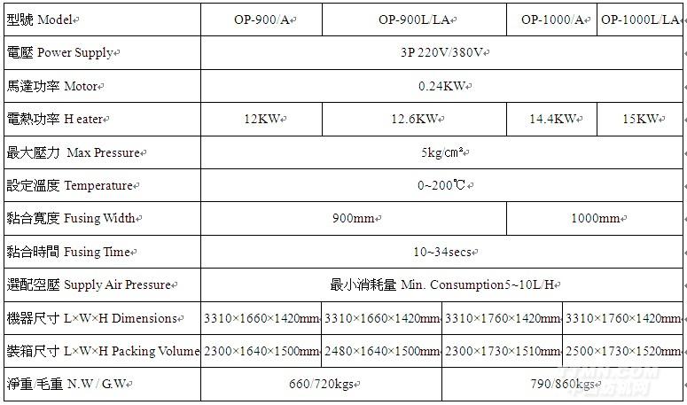 OP-1000/1000A/1000L/1000LA連續(xù)式黏合機(jī)