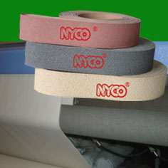 糙面橡皮用來增大磨擦系數(shù),通常用于紡織行業(yè)不同工序中的織物牽引,如使用在各種噴氣、噴水、劍桿、片梭等無梭織機(jī)及驗(yàn)布機(jī)、印染設(shè)備的導(dǎo)布輥上。