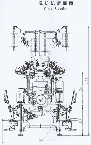 主傳動通過主軸,傳動直徑ф204毫米的滾盤帶動錠子運轉(zhuǎn),中墻板采用框式結(jié)構(gòu),E型龍筋,角尺型機梁,緊湊穩(wěn)固,機架重心低,剛性好。