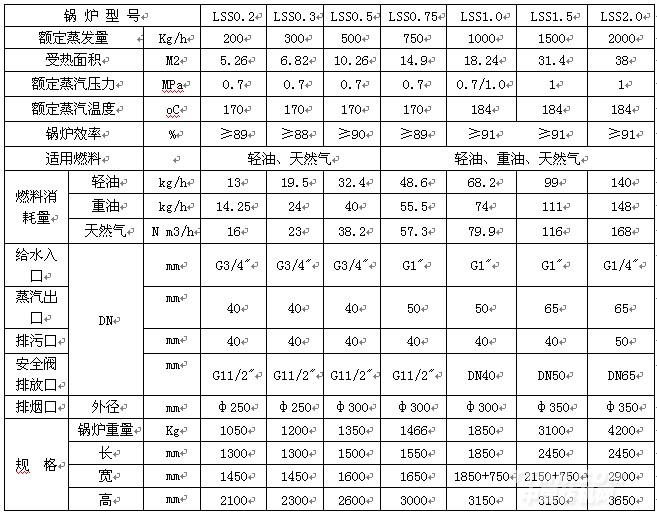 LSS系列燃油(氣)蒸汽鍋爐主要技術(shù)參數(shù)