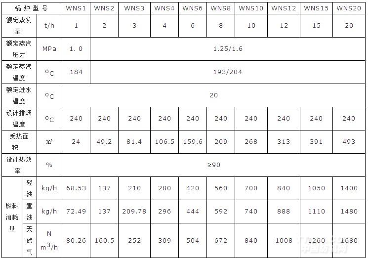 WNS系列燃油(氣)蒸汽鍋爐主要技術(shù)參數(shù)