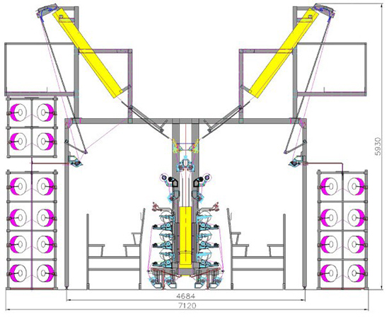 為了實(shí)現(xiàn)多品種在同一機(jī)器上包紗加工,海源設(shè)計(jì)了不同技術(shù)路線和裝置,能夠同時加工滌綸、錦綸、陽離子、氨綸、海藻纖維、仿毛紗、異牽伸絲等復(fù)合絲產(chǎn)品生產(chǎn)。