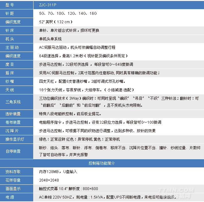 單機(jī)頭,單系統(tǒng)。采用數(shù)字化技術(shù),實(shí)現(xiàn)橫機(jī)的自動(dòng)翻針、吊目、挑孔、提花、明收針及其它規(guī)則花型編織功能??删幙椈踞樋椊M織(四平、單面等)、多色無規(guī)則提花、絞花等緯編組織。高速、平穩(wěn)運(yùn)行的單系統(tǒng)機(jī)頭,在卷布羅拉的配合下,平針編織效果更佳,織物密度均勻、條紋清晰的同時(shí)真正意義上實(shí)現(xiàn)了工作效率的提高。