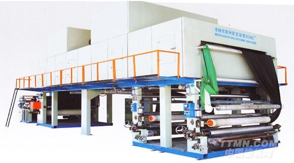 本設(shè)備采用二組上膠滾涂機頭組成,頂部采用雙層保溫?zé)犸L(fēng)循環(huán)烘房,帶熱壓貼合,冷卻出布打卷成品。其性能特點可兩次連續(xù)上膠,彌補了單版機一次上膠不足的缺點。又可根據(jù)市場上涂層機上做不出的產(chǎn)品效果,采用網(wǎng)紋輥筒上膠滾涂,生產(chǎn)出來的產(chǎn)品透氣性、手感好,上膠均勻,花樣清晰,適用于皮革、紡織面料的表面處理加工。